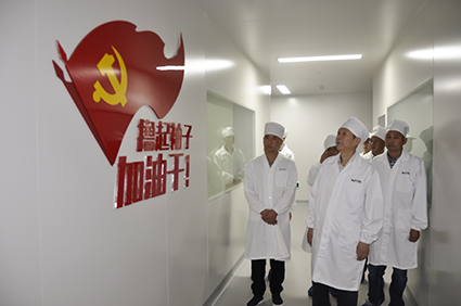 姚准明副书记首先视察了党员活动室、行政办公楼、研究院、D106车间、员工餐厅等主要办公及生活区域,详细了解各区域内的党建设施配置及各支部党建活动开展情况,对党员活动室、党员示范岗、党建宣传栏等重点设施规划提出具体意见。