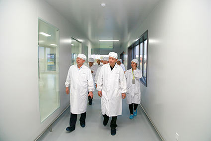 王国海委员一行先后参观了公司恒广路总部行政办公楼、研究院、D106及无菌制剂车间、仓储中心等,重点了解各实验室、车间的仪器设备配置和使用情况,以及公司现有平台的规划与布局。考察团一行对于公司厂区园林化、办公开放化、设备现代化、布局体系化的发展现状给与了充分肯定。