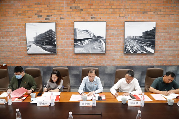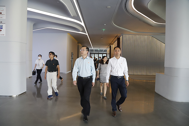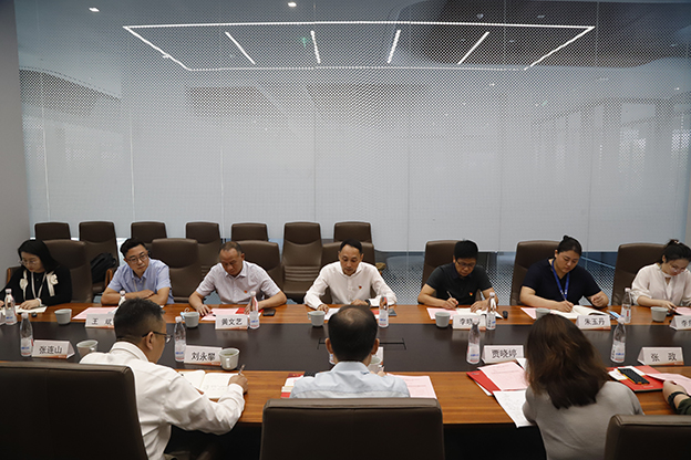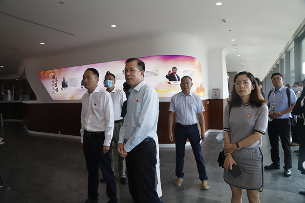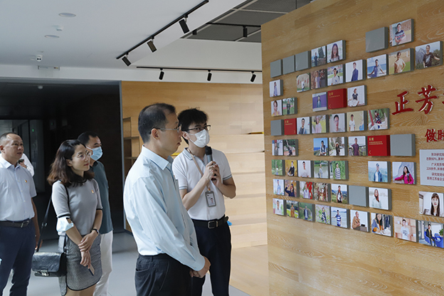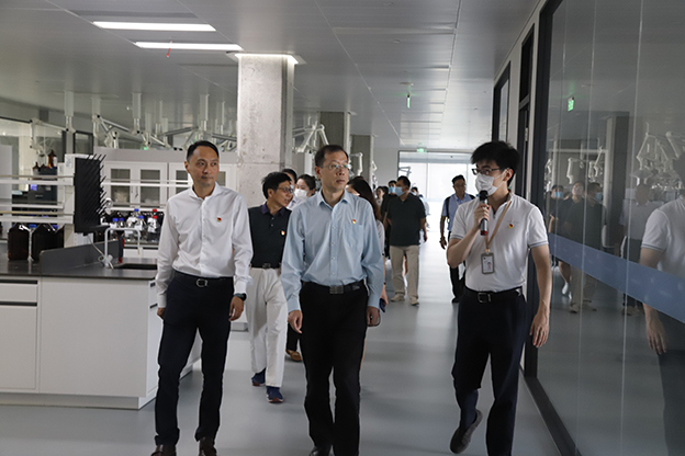张光鹏副校长一行参观了公司党建展厅、党员活动室、研究院等办公区域。张翎副总裁详细介绍公司在党建主题教育、党员示范岗、党史学习活动、科研创新等方面的具体措施。