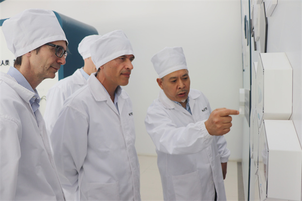 Lupi Marco先生一行首先在田舟山总裁陪同下参观了公司恒广路园区固体制剂车间、研究院和普润医药总控室、中试车间、原料车间、废气处理控制中心等生产、研发基地,听取了相关负责人对园区建设、设备设施、生产工艺、安全环保管理和药物研发等方面的介绍。
