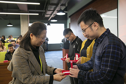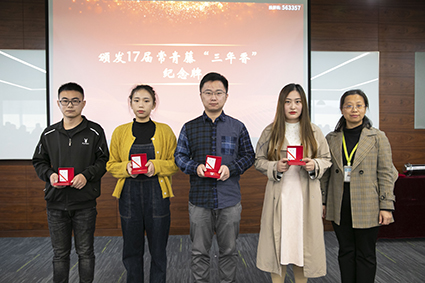 公司副总经理张翎、总经理助理徐丹、生产技术总监原元、生产技术总监朱文华、副总经理助理姜忠军、认证管理部经理赵红受邀出席仪式,并为常青藤员工代表颁发转正证书、奖状及“一年青”、“三年香”、“6年陈”纪念品。