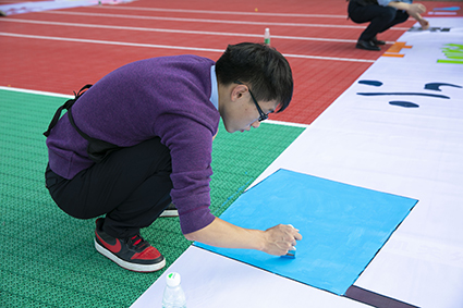 当日下午,全体常青藤员工来到篮球场,分为10个小队开始拓展活动。他们用手中的画笔在各自的纸面上创作,共同拼合成了一幅色彩斑斓“常青藤巨画”,正如他们所拥有的青春,是那么充满诗意而不缺乏拼搏的激情。
