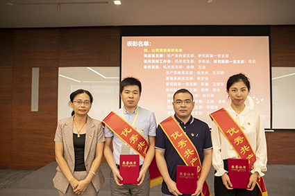 随后,公司党委委员张洁同志宣读公司受到上级党委表彰的党员和支部名单及《时博官方网站关于“七一”表彰先进党支部、优秀党务工作者、优秀共产党员的决定》。共表彰先进党支部5个、优秀支部书记1名、优秀党务工作者3名、优秀共产党员16名。公司党委、纪委领导为受表彰的党员和支部代表颁奖。