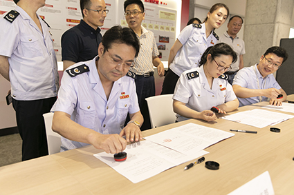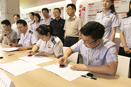 在全体人员的注视下,南京市税务局第二稽查局检查二科支部、办公室支部,与南京正大天晴机关党支部、研究院第二支部正式结对,各支部书记或代表共同签署了《支部党建共建合作协议书》。今后,双方将认真按照协议约定,充分利用各自的资源优势,积极开展形式多样的支部共建活动。