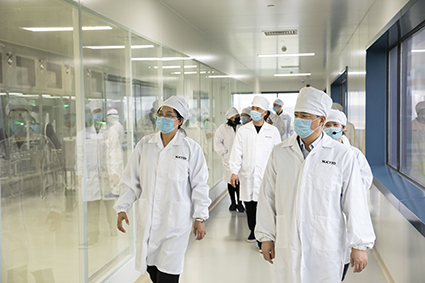 刘小斌副书记一行先后参观了公司D106车间、无菌制剂车间、研究院等,实地查看公司产能规模及配套硬件设备、研发平台建设及人员配置等情况,充分肯定了公司在现有体量下的研发智造实力,并对园区内别出心裁的设计元素表示赞赏。