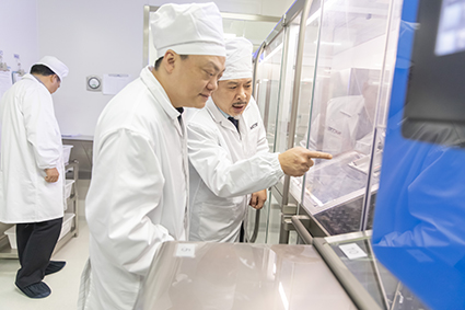 在公司领导及同事的陪同下,刘登攀副董事长一行先后参观了公司D106车间、研究院,重点了解公司研发及生产环境、实验室和车间仪器配置及人员结构情况等。九州通医药集团的各位领导对于公司高规格的研发、生产平台及各业务快速发展表示高度肯定。